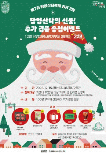 [ÅåÅå´º½º]´ã¾ç±ºÀÌ ¿¬¸»À» ¸Â¾Æ 12¿ù 15ÀϺÎÅÍ 28ÀϱîÁö 2ÁÖ°£ ¡®´ã¾ç»êŸÀÇ ¼±¹°! °íÇâ»ç¶û±âºÎ Ãß°¡ °æÇ° ÁõÁ¤ À̺¥Æ®¡¯¸¦ ½Ç½ÃÇÑ´Ù.