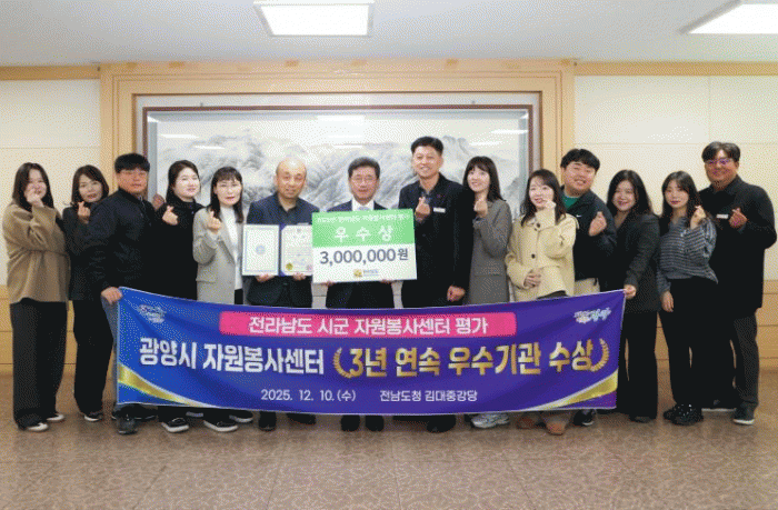 [ÅåÅå´º½º]±¤¾ç½Ã(±¤¾ç½ÃÀÚ¿øºÀ»ç¼¾ÅÍ)´Â Áö³ 10ÀÏ Àü³²µµÃ» ±è´ëÁß °´ç¿¡¼ ¿¸° ¡®2025 Àü¶ó³²µµ ÀÚ¿øºÀ»çÀÚ ´ëȸ¡¯¿¡¼ ½Ã±º ÀÚ¿øºÀ»ç¼¾ÅÍ Æò°¡ ¿ì¼ö»óÀ» ¼ö»óÇϸç 3³â ¿¬¼Ó ¿ì¼ö±â°üÀ¸·Î ¼±Á¤µÇ´Â Äè°Å¸¦ ÀÌ·ð´Ù°í ¹àÇû´Ù.