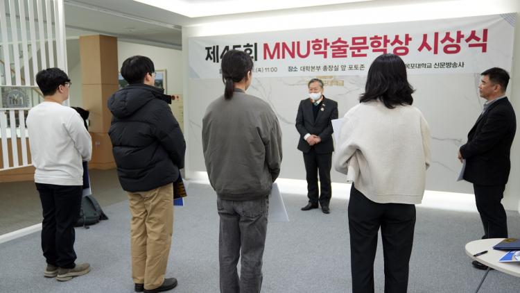 [ÅåÅå´º½º] ±¹¸³¸ñÆ÷´ëÇб³(ÃÑÀå ¼ÛÇÏö) ½Å¹®¹æ¼Û»ç°¡ ÁÖÃÖÇÑ ¡®Á¦45ȸ MNUÇмú¹®Çлó ½Ã»ó½Ä¡¯ÀÌ Áö³ 11ÀÏ(¸ñ) 11½Ã 30ºÐ ´ëÇк»ºÎ ÃÑÀå½Ç ¿· Æ÷ÅäÁ¸¿¡¼ °³ÃֵǾú´Ù°í ¹àÇû´Ù.