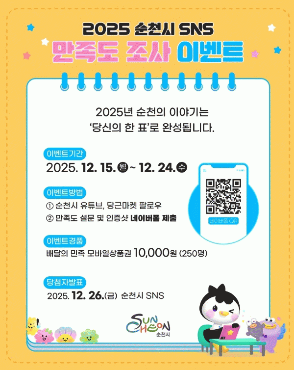 [ÅåÅå´º½º]¼øÃµ½Ã´Â ½Ã °ø½Ä SNS ä³Î ÀÌ¿ëÀÚµéÀ» ´ë»óÀ¸·Î ¡®2025³â ¼øÃµ½Ã SNS ¸¸Á·µµ Á¶»ç À̺¥Æ®¡¯¸¦ °³ÃÖÇÑ´Ù°í ¹àÇû´Ù.