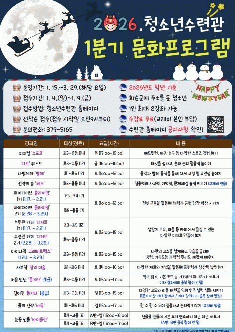 [ÅåÅå´º½º]ȼø±ºÀº ¿À´Â 1¿ù 4ÀϺÎÅÍ 1¿ù 9ÀϱîÁö û¼Ò³â¼ö·Ã°ü¿¡¼ »õÇØ ù ºÐ±â¸¦ ¸Â¾Æ û¼Ò³â ¼ºÀåÀ» Áö¿øÇÏ´Â ¡®2026³â 1ºÐ±â ¹®È ÇÁ·Î±×·¥¡¯ Âü°¡ÀÚ 166¸íÀ» ¼±Âø¼øÀ¸·Î ¸ðÁýÇÑ´Ù°í ¹àÇû´Ù.