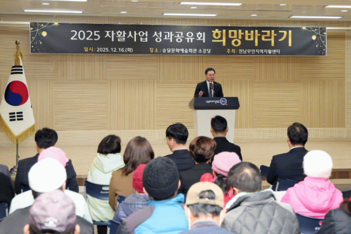 [ÅåÅå´º½º]Àü³² ¹«¾È±ºÀº ¹«¾ÈÁö¿ªÀÚȰ¼¾ÅÍ 2025³â ¼º°ú°øÀ¯È¸¸¦ Áö³ 12¿ù 16ÀÏ ½Â´Þ¹®¿¹È¸°ü ¼Ò°´ç¿¡¼ °³ÃÖÇßÀ¸¸ç, À̳¯ ¹«¾ÈÁö¿ªÀÚȰ¼¾ÅÍ Á¾»çÀÚ, ÀÚȰ±Ù·Î»ç¾÷ Âü¿©ÀÚ, Áö¿ªÁֹΠµî 100¿© ¸íÀÌ ¸ð¿© ¼ÒÅëÀÇ ÀåÀ» ¿¾ú´Ù.