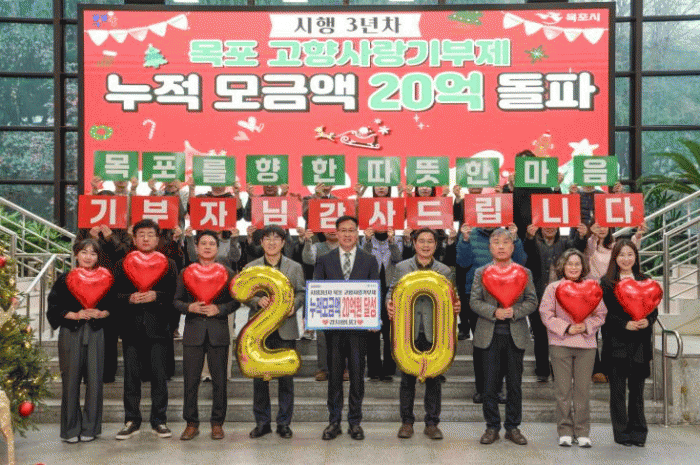 [ÅåÅå´º½º]¸ñÆ÷½Ã´Â °íÇâ»ç¶û±âºÎÁ¦ ½ÃÇà 3³â ¸¸¿¡ ½Ã¹Î°ú Çâ¿ìµéÀÇ ²ÙÁØÇÑ ÀÀ¿ø°ú Âü¿©¿¡ ÈûÀÔ¾î 12¿ù 16ÀÏ ±âÁØ ´©Àû ¸ð±Ý¾× 20¾ï ¿øÀ» ´Þ¼ºÇß´Ù°í ¹àÇû´Ù.