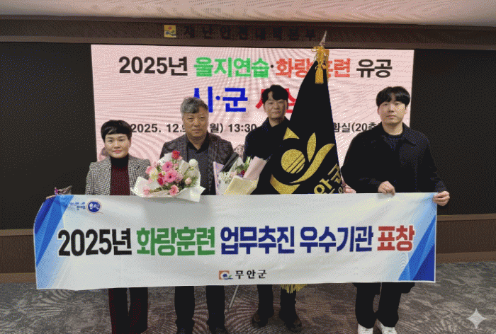 [ÅåÅå´º½º]Àü³² ¹«¾È±ºÀº Áö³ 12ÀÏ Àü¶ó³²µµ¿¡¼ ÁÖ°üÇÑ 2025³â ȶûÈÆ·Ã µµÁö»ç ǥ⠽ûó½Ä¿¡¼ ȶûÈÆ·Ã ¾÷¹« À¯°ø ¿ì¼ö±â°üÀ¸·Î ¼±Á¤µÅ Àü³²µµÁö»ç ±â°üǥâÀ» ¼ö»óÇß´Ù.
