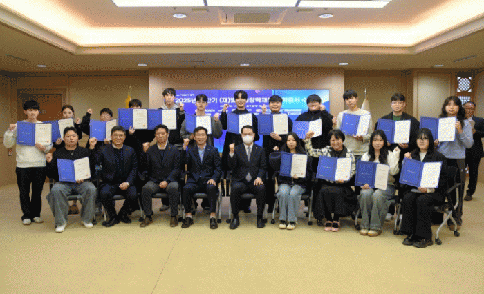[ÅåÅå´º½º](Àç)ºû°íÀ»ÀåÇÐÀç´ÜÀº 17ÀÏ ½Ãû ºñÁî´Ï½º·ë¿¡¼ ¡®2025³â ÇϹݱ⠺û°íÀ»ÀåÇÐÀç´Ü ÀåÇÐÁõ¼ ¼ö¿©½Ä¡¯À» ¿°í, ´ëÇ¥·Î Âü¼®ÇÑ Çлý 20¸í¿¡°Ô ÀåÇÐÁõ¼¸¦ Àü´ÞÇß´Ù.