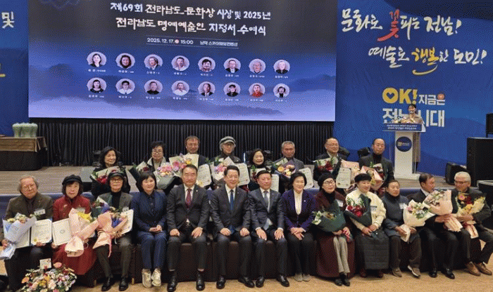 [ÅåÅå´º½º]½Å¾È±º¿¡¼ Ȱµ¿Çϸç Áö¿ª ¹®È¿¹¼ú ÁøÈï¿¡ ¾ÕÀå¼ ¿Â ±èÀº¿Á ÀÛ°¡¿Í ¹Ú¼±¿ì ½ÃÀÎÀÌ Àü¶ó³²µµÀÇ Áö¿ª ¹®È ºÐ¾ß °¡Àå ±ÇÀ§ ÀÖ´Â »óÀ¸·Î ²ÅÈ÷´Â ¡®Á¦69ȸ Àü¶ó³²µµ ¹®È»ó¡¯À» ¼ö»óÇß´Ù.