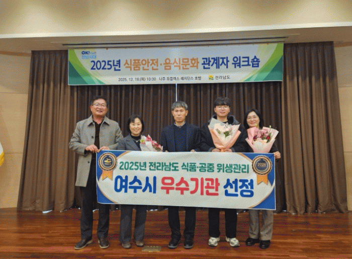 [ÅåÅå´º½º]¿©¼ö½Ã´Â Àü¶ó³²µµ°¡ ÁÖ°üÇÑ 2025³â ½Äǰ¡¤°øÁß À§»ý¾÷¹« Æò°¡¿¡¼ ¿ì¼ö±â°üÀ¸·Î ¼±Á¤µÆ´Ù°í ¹àÇû´Ù.