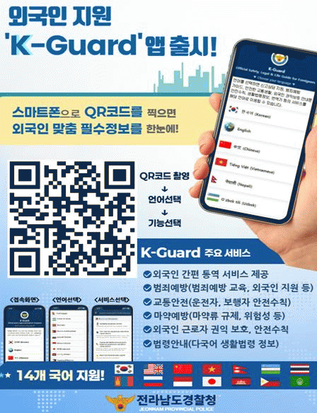 [ÅåÅå´º½º]Àü³²°æÂûûÀº ±¹³» ü·ù ¿Ü±¹ÀÎÀÇ ¹üÁË¡¤»ç°í ¿¹¹æ°ú ÀαÇÀÌ Á¸Áß¹Þ´Â »çȸ¸¦ À§ÇØ ¿Ü±¹ÀÎ ¸ÂÃãÇü ÅëÇÕ Á¤º¸Á¦°ø ¾Û¡ºK-Guard¡»¸¦ °³¹ßÇϰí, 12¿ù 22ÀϺÎÅÍ ½Ã¹ü¿î¿µ¿¡ µé¾î°£´Ù°í ¹àÇû´Ù.