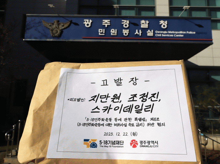 [ÅåÅå´º½º]±¤ÁÖ±¤¿ª½Ã¿Í 5¡¤18±â³äÀç´ÜÀº 22ÀÏ Áö¸¸¿ø¡¤Á¶Á¤Áø ¾¾¿Í ÀÎÅÍ³Ý ½Å¹®»ç ¡®½ºÄ«À̵¥Àϸ®¡¯¸¦ 5¡¤18¹ÎÁÖȿ µî¿¡ °üÇÑ Æ¯º°¹ý Á¦8Á¶(ÇãÀ§»ç½Ç À¯Æ÷ ±ÝÁö) À§¹Ý ÇøÀÇ·Î °í¹ßÇß´Ù.