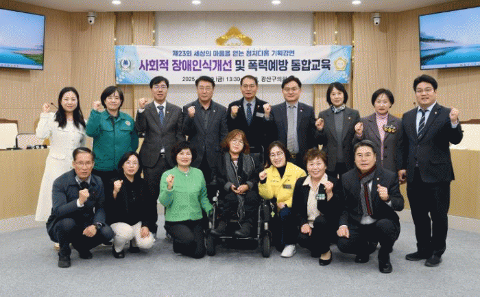 [ÅåÅå´º½º]±¤»ê±¸ÀÇȸ°¡ 19ÀÏ Àüü ÀÇ¿øÀ» ´ë»óÀ¸·Î Àå¾ÖÀÎ½Ä °³¼± ¹× 4´ë Æø·Â ¿¹¹æÀ» À§ÇÑ ¡®Á¤Ä¡´Ù¿ò ±âȹ°¿¬¡¯À» °³ÃÖÇß´Ù.