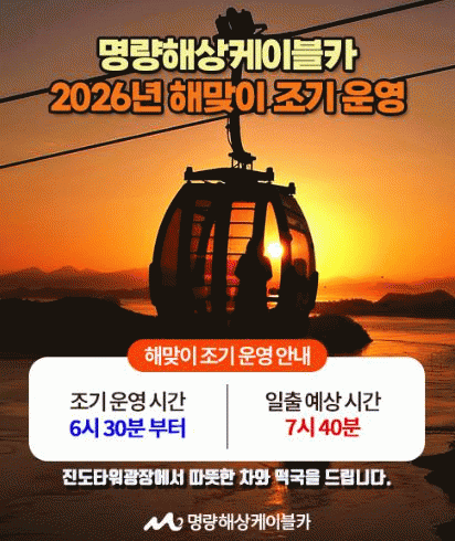 Àü³² ÇØ³², ÁøµµÁö¿ªÀÇ ´ëÇ¥ °ü±¤ÁöÀÎ ¸í·®ÇØ»óÄÉÀ̺íÄ«´Â 2026³â 1¿ù 1ÀÏ »õÇØ ÇØ¸ÂÀ̸¦ À§ÇØ Æò¼Òº¸´Ù À̸¥ ¿ÀÀü 6½Ã 30ºÐºÎÅÍ ÄÉÀ̺íÄ« Á¶±â ¿î¿µ¿¡ ³ª¼±´Ù.
