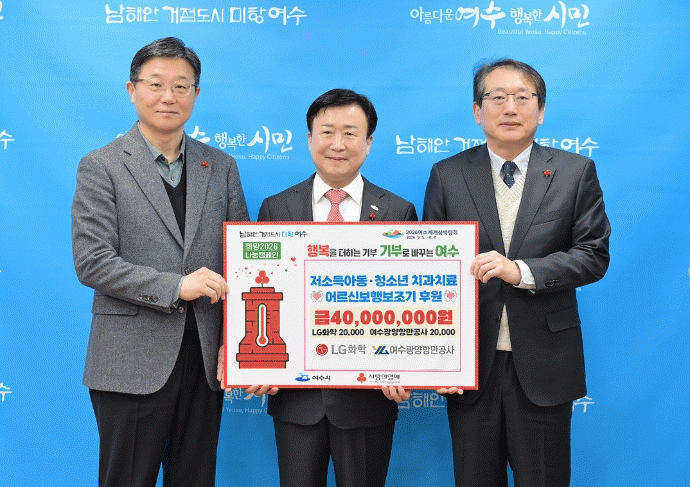 [ÅåÅå´º½º]¿©¼ö½Ã´Â LGÈÇÐ ¿©¼ö°øÀå(ÁÖÀçÀÓ¿ø ÀÌÇö±Ô)°ú ¿©¼ö±¤¾çÇ׸¸°ø»ç(»çÀåÁ÷¹«´ëÇà ȲÇйü)°¡ Áö³ 23ÀÏ Àú¼Òµæ ¾Æµ¿¡¤Ã»¼Ò³â Ä¡°úÄ¡·á Áö¿ø»ç¾÷°ú ³ëÀÎ º¸Çà º¸Á¶±â Áö¿ø»ç¾÷ ÃßÁøÀ» À§ÇØ 2õ¸¸ ¿ø¾¿ ÃÑ 4õ¸¸ ¿øÀ» ÈÄ¿øÇÏ´Â Áõ¼¸¦ Àü´ÞÇß´Ù°í ¹àÇû´Ù.