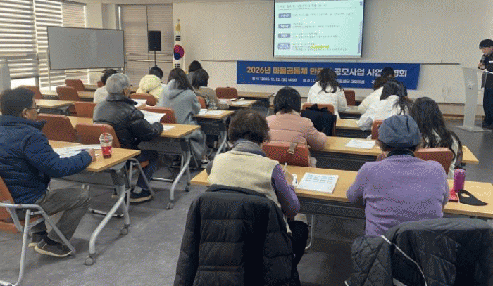 [ÅåÅå´º½º]Àü¶ó³²µµ ³ªÁֽð¡ ÁֹΠÁÖµµÀÇ ¸¶À»°øµ¿Ã¼ Çü¼º°ú Áö¿ª ¹®Á¦ ÇØ°áÀ» Áö¿øÇϱâ À§ÇØ ¡®2026³â ¸¶À»°øµ¿Ã¼ ¸¸µé±â °ø¸ð»ç¾÷¡¯ ¼³¸íȸ¸¦ ¿°í »ç¾÷ ¹æÇâ°ú Âü¿© ¹æ¹ýÀ» °øÀ¯Çß´Ù.