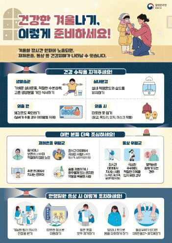 °í·ÉÀÚ¿Í ¸¸¼ºÁúȯÀÚ´Â °Ü¿ïö ÃßÀ§¿¡ Ãë¾àÇÑ ¸¸Å ±â¿ÂÀÌ ³·Àº ³¯¿¡´Â ¹«¸®ÇÑ ¿ÜÃâÀ» ÇÇÇϰí ü¿Â À¯Áö¿¡ °¢º°È÷ ½Å°æ½á¾ß ÇÑ´Ù.