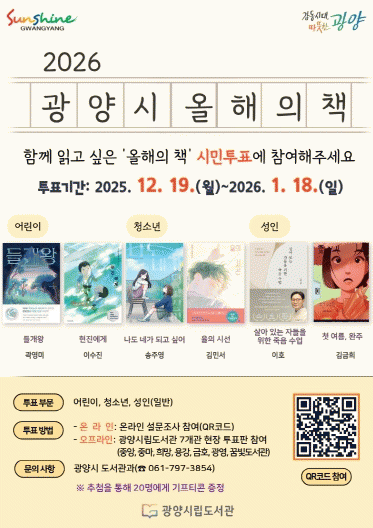 [ÅåÅå´º½º]±¤¾ç½Ã°¡ ¿À´Â 12¿ù 29ÀϺÎÅÍ ³»³â 1¿ù 18ÀϱîÁö ¡®2026 ¿ÃÇØÀÇ Ã¥¡¯ ¼±Á¤À» À§ÇÑ ½Ã¹ÎÅõÇ¥¸¦ ½Ç½ÃÇÑ´Ù.