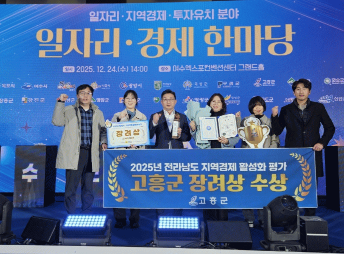 [ÅåÅå´º½º]°íÈﱺÀº 2025³â Àü¶ó³²µµ ÀÏÀÚ¸®°æÁ¦ ÇѸ¶´ç Çà»ç ½Ã»ó½Ä¿¡¼ ¡®2025³â Áö¿ª°æÁ¦ Ȱ¼ºÈ Æò°¡¡¯ Àå·Á»óÀ» ¼ö»óÇØ ±â°ü ǥâ°ú ÇÔ²² 200¸¸ ¿øÀÇ ½Ã»ó±ÝÀ» ¹Þ¾Ò´Ù°í 29ÀÏ ¹àÇû´Ù.