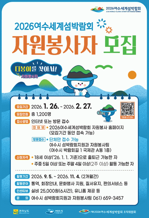 ÇÑÆí, 2026¿©¼ö¼¼°è¼¶¹Ú¶÷ȸ´Â ¡®¼¶, ¹Ù´Ù¿Í ¹Ì·¡¸¦ ÀÕ´Ù¡¯¸¦ ÁÖÁ¦·Î µ¹»ê Áø¸ðÁö±¸ ÀÏ¿ø¿¡¼ °³ÃÖµÉ ¿¹Á¤À̸ç, ½Ã´Â ¼¶¹Ú¶÷ȸ¿¡ ÇÔ²²ÇÒ ÀÚ¿øºÀ»çÀÚ¸¦ ¿À´Â 2026³â 1¿ù 26ÀϺÎÅÍ 2¿ù 27ÀϱîÁö ¸ðÁýÇÑ´Ù.
