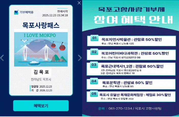 [ÅåÅå´º½º]¸ñÆ÷½Ã´Â °íÇâ»ç¶û±âºÎÁ¦ Âü¿©ÀÚ¸¦ ´ë»óÀ¸·Î ¡®¸ñÆ÷»ç¶ûÆÐ½º¡¯¸¦ ¹ß±ÞÇÑ´Ù°í 30ÀÏ ¹àÇû´Ù.