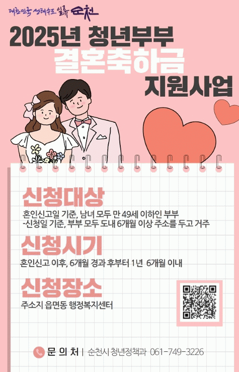 [ÅåÅå´º½º]¼øÃµ½Ã´Â û³â¼¼´ëÀÇ °áÈ¥ Ãʱ⠰æÁ¦Àû ºÎ´ãÀ» ÁÙÀÌ°í ¾ÈÁ¤ÀûÀÎ Áö¿ª Á¤ÂøÀ» µ½±â À§ÇØ ÃßÁøÇÑ ¡®2025³â û³âºÎºÎ °áÈ¥ÃàÇÏ±Ý Áö¿ø»ç¾÷¡¯À» ¼º°øÀûÀ¸·Î ¸¶¹«¸®Çß´Ù°í ¹àÇû´Ù.