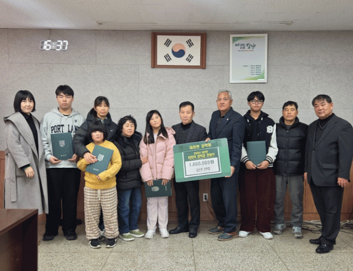 [ÅåÅå´º½º] ´ã¾ç±º ´ëÀüÀåÇÐȸ(ȸÀå À̰æ¸ð)´Â Áö³ 29ÀÏ ´ëÀü¸é»ç¹«¼Ò ȸÀǽǿ¡¼ ÀåÇÐȸ ȸ¿ø°ú ÀåÇÐ±Ý Áö¿ø ´ë»ó ¾Æµ¿¡¤Ã»¼Ò³â, Çкθð µîÀÌ Âü¼®ÇÑ °¡¿îµ¥ ÀåÇÐ±Ý Àü´Þ½ÄÀ» °¡Á³´Ù°í ¹àÇû´Ù.
