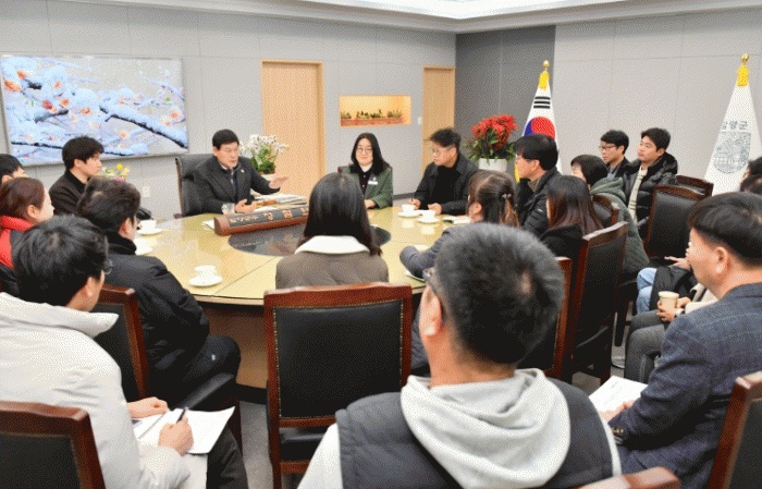 [ÅåÅå´º½º] ´ã¾ç±ºÀº Áö³ 5ÀÏ ´ã¾ç±ºÃ» ¼Ò¼â¿ø½Ç¿¡¼ Áö¿ª ³ó¾÷ÀÇ ¹Ì·¡¸¦ À̲ø¾î°¥ û³â ³ó¾÷Àΰú ³ó¾÷»ç°üÇб³ Á¹¾÷»ýµéÀÌ Âü¼®ÇÑ °¡¿îµ¥, ÇöÀåÀÇ ¸ñ¼Ò¸®¸¦ Á÷Á¢ µè°í ¹ßÀü ¹æ¾ÈÀ» ¸ð»öÇϱâ À§ÇÑ ¡®Ã»³â ³ó¾÷ÀÎ ¼ÒÅë °£´ãȸ¡¯¸¦ °³ÃÖÇß´Ù.