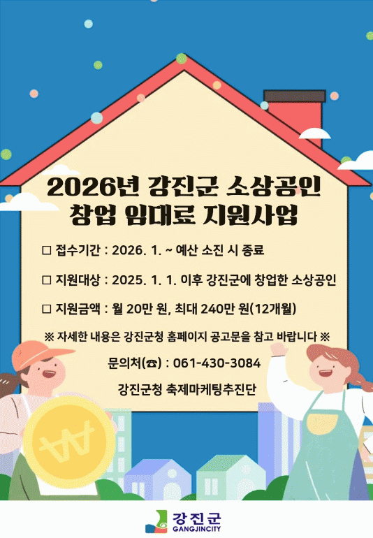 [ÅåÅå´º½º]°Áø±ºÀÌ Ã¢¾÷ Ãʱ⠼һó°øÀÎÀÇ °æÁ¦Àû ºÎ´ãÀ» ´ú°í ¾ÈÁ¤ÀûÀÎ °æ¿µ ±â¹ÝÀ» ¸¶·ÃÇϱâ À§ÇØ '2026³â ¼Ò»ó°øÀΠâ¾÷ ÀÓ´ë·á Áö¿ø»ç¾÷'À» º»°Ý ÃßÁøÇÑ´Ù.