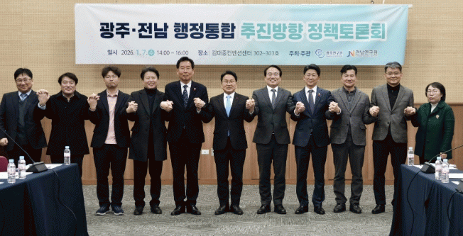 [ÅåÅå´º½º]±¤ÁÖ¿¬±¸¿ø°ú Àü³²¿¬±¸¿øÀº 7ÀÏ ¿ÀÈÄ ±è´ëÁßÄÁº¥¼Ç¼¾ÅÍ¿¡¼ ±¤ÁÖ¡¤Àü³² ÇàÁ¤ÅëÇÕ ÃßÁø Çʿ伺¿¡ ´ëÇÑ »çȸÀû °ø°¨´ë¸¦ È®º¸ÇÏ°í ¼º°øÀû ÅëÇÕ ¹æ¾ÈÀ» ¸ð»öÇϱâ À§ÇØ ¡®±¤ÁÖ¡¤Àü³² ÇàÁ¤ÅëÇÕ ÃßÁø ¹æÇâ Á¤Ã¥Åä·Ðȸ¡¯¸¦ °³ÃÖÇß´Ù.