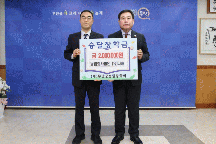 [ÅåÅå´º½º]¹«¾È±ºÀº Áö³ 9ÀÏ ³ó¾÷ȸ»ç¹ýÀÎ À¯ÇÑȸ»ç ´Ù¼Ö ±èÁö¼ö ´ëÇ¥°¡ Áö¿ª ÀÎÀç À°¼ºÀ» À§ÇØ (Àç)¹«¾È±º½Â´ÞÀåÇÐȸ¿¡ ÀåÇÐ±Ý 200¸¸ ¿øÀ» ±âŹÇß´Ù°í ¹àÇû´Ù.