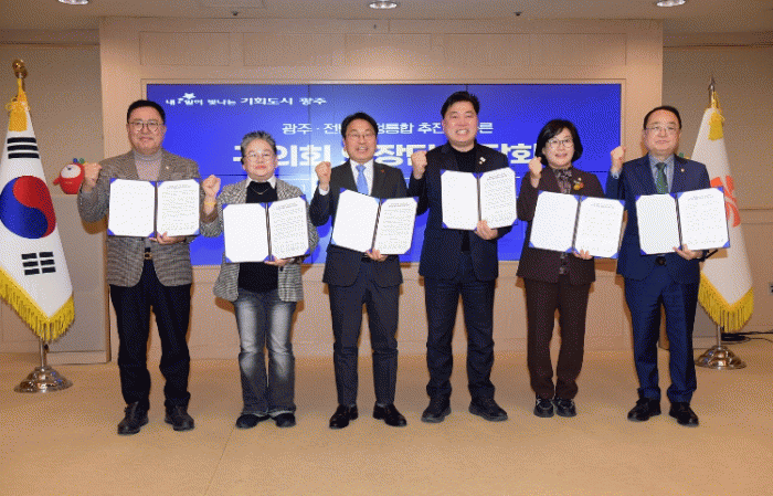 [ÅåÅå´º½º]±¤ÁÖ½Ã¿Í 5°³ ÀÚÄ¡±¸ÀÇȸ°¡ (°¡Äª)±¤ÁÖÀü³²Æ¯º°½ÃÀÇ ¼º°øÀû ¾ÈÂøÀ» À§ÇÑ ¡®´ëÅëÇÕ °øµ¿ ¼±¾ð¡¯À» ¹ßÇ¥Çß´Ù.