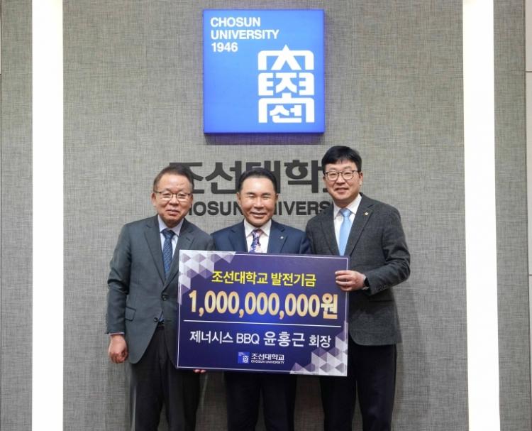 [ÅåÅå´º½º] ±¹³» ´ëÇ¥ ¿Ü½Ä ÇÁ·£Â÷ÀÌÁî ±â¾÷ Á¦³Ê½Ã½ºBBQ ±×·ì À±È«±Ù ȸÀåÀÌ Á¶¼±´ëÇб³¿¡ ¹ßÀü±â±Ý 10¾ï ¿øÀ» ±âºÎÇÏ¸ç ³²´Ù¸¥ ¸ð±³»ç¶ûÀ» ½ÇõÇß´Ù.