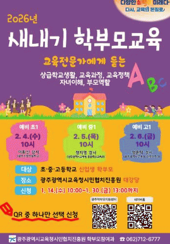 [ÅåÅå´º½º]±¤Áֽñ³À°Ã»½Ã¹ÎÇùÄ¡ÁøÈï¿øÀº ¿À´Â 2¿ù 4~6ÀÏ º»¿ø ´ë°´ç¿¡¼ ÃÊ¡¤Áß¡¤°íµîÇб³ ½ÅÀÔ»ý Çкθ𸦠´ë»óÀ¸·Î ¡®2026³â »õ³»±â Çкθð±³À°¡¯À» ¿î¿µÇÑ´Ù.