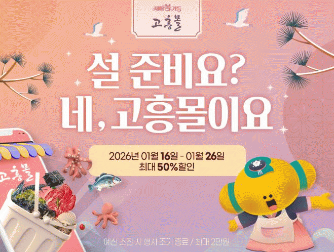 [ÅåÅå´º½º]°íÈﱺÀÌ ¿î¿µÇÏ´Â °ø½Ä ¿Â¶óÀÎ ¼îÇθô °íÈï¸ôÀº ¼³ ¸íÀýÀ» ¾ÕµÎ°í 1¿ù 16ÀϺÎÅÍ 26ÀϱîÁö ¿Èê°£ ¼³ ¸íÀý À庸±â ±âȹÀü ¡®¼³ Áغñ¿ä? ³×, °íÈï¸ôÀ̿䡯¸¦ ¿î¿µÇÑ´Ù.