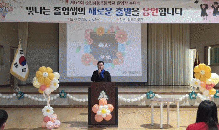 [ÅåÅå´º½º]±èÁ¤Èñ Àü³²µµÀÇȸ ±³À°À§¿øÀåÀº 1¿ù 16ÀÏ, ¼øÃµ¼ºµ¿ÃʵîÇб³(±³Àå ¿Àȼ±)¿¡¼ ¿¸° Á¦64ȸ Á¹¾÷½Ä¿¡ Âü¼®ÇØ Á¹¾÷»ýµéÀÇ »õ·Î¿î Ãâ¹ßÀ» ÃàÇÏÇÏ°í µû¶æÇÑ °Ý·ÁÀÇ ¸Þ½ÃÁö¸¦ ÀüÇß´Ù.
