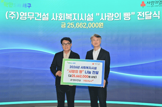 ¹ÚÀçÈ« ¢ß¿µ¹«°Ç¼³ ȸÀåÀº ¡°Áö¿ª»çȸ¿Í ÇÔ²² ¼ºÀåÇØ ¿Â ±â¾÷À¸·Î¼ µµ¿òÀÌ ÇÊ¿äÇÑ ÀÌ¿ôµé¿¡°Ô ÀÛÀº Á¤¼ºÀ» ²ÙÁØÈ÷ ÀüÇÏ°í ½Í¾ú´Ù¡±¸ç ¡°¾ÕÀ¸·Îµµ Áö¼ÓÀûÀÎ »çȸ°øÇå Ȱµ¿À» ÅëÇØ µû¶æÇÑ ³ª´® ¹®È¸¦ È®»êÇØ°¡°Ú´Ù¡±°í ¸»Çß´Ù.
