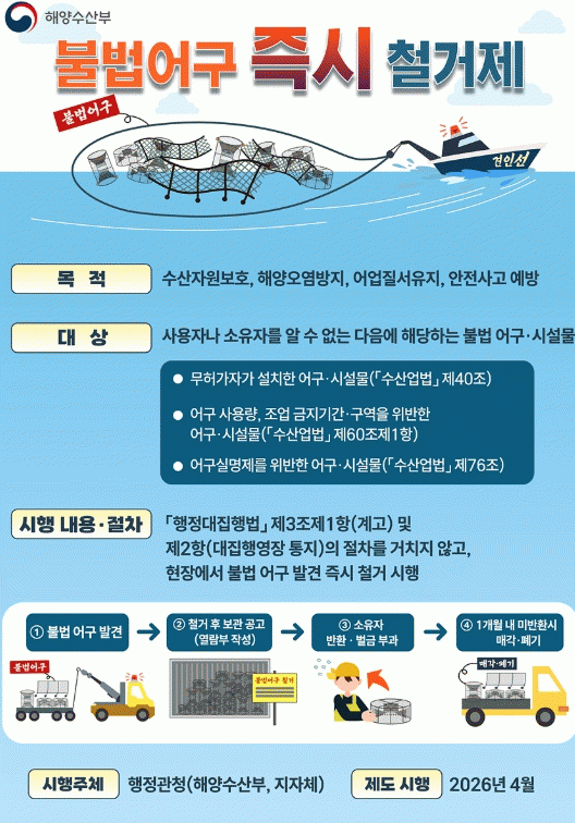 [ÅåÅå´º½º]¿©¼ö½Ã´Â ¿ÃÇØ 4¿ù 23ÀϺÎÅÍ ºÒ¹ý ¼³Ä¡µÈ ¾î±¸ ÇÇÇØ¸¦ ¹æÁöÇϰí ÇØ¾çȯ°æ º¸È£¿Í ¼ö»êÀÚ¿øÀÇ Áö¼Ó °¡´ÉÇÑ ÀÌ¿ëÀ» À§ÇØ ¡®(°¡Äª)¾î±¸°ßÀÎÁ¦¡¯°¡ ½ÃÇàµÉ ¿¹Á¤ÀÌ´Ù.