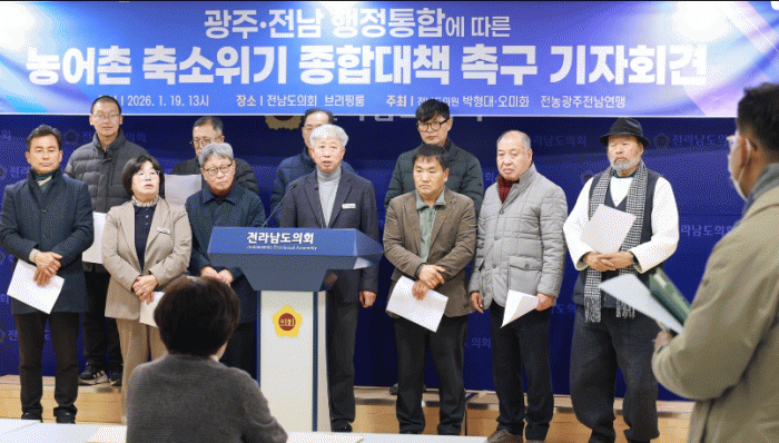 [ÅåÅå´º½º]Àü¶ó³²µµÀÇȸ ¹ÚÇü´ë ÀÇ¿ø(Áøº¸´ç¡¤ÀåÈï1)Àº 1¿ù 19ÀÏ µµÀÇȸ ºê¸®Çη뿡¼ ±âÀÚȸ°ßÀ» ¿°í ¡°±¤ÁÖ¤ýÀü³² ÇàÁ¤ÅëÇÕ ³íÀǰ¡ ¼Óµµ¸¦ ³»°í ÀÖÁö¸¸ ³ó¾îÃÌ Ãà¼Ò À§±â¿¡ ´ëÇÑ ´ëºñ´Â ÇöÀúÈ÷ ºÎÁ·ÇÏ´Ù¡±¸ç ³ó¾îÃÌ º¸È£¸¦ À§ÇÑ ±¸Ã¼Àû ÇÕÀǸ¦ ¿ä±¸Çß´Ù.