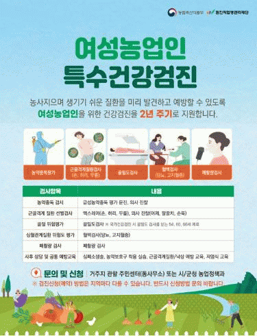[ÅåÅå´º½º]±¤¾ç½Ã´Â ¿©¼º³ó¾÷ÀÎÀÇ ³óÀÛ¾÷ Áúȯ ¿¹¹æ°ú °Ç°º¹Áö ÁõÁøÀ» À§ÇØ ±Ù°ñ°Ý°è µî ¿©¼º³ó¾÷ÀÎÀÌ Ãë¾àÇÑ Áúȯ¿¡ ´ëÇÑ °Ç°°ËÁøÀ» Áö¿øÇÏ´Â 2026³âµµ ¿©¼º³ó¾÷ÀΠƯ¼ö°Ç°°ËÁø Áö¿ø»ç¾÷ÀÇ Ãß°¡ ½ÅûÀ» ¿À´Â 2¿ù 27ÀϱîÁö ÁÖ¼ÒÁö À¾¡¤¸é¡¤µ¿¿¡¼ Á¢¼öÇÑ´Ù.