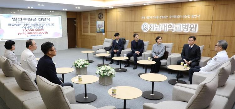 À̹ø ±âŹÀ¸·Î ¼ºÀÎÇпø °¡Á·ÀÌ Àü³²´ëº´¿øÀ» À§ÇØ ÄèôÇÑ ´©Àû ÈÄ¿ø±ÝÀº ÃÑ 1¾ï¿ø¿¡ ´ÞÇÏ°Ô µÆ´Ù. ¼ºÀÎÇпø °¡Á·°ú Àü³²´ëº´¿ø ¹ßÀüÈÄ¿øÈ¸ÀÇ Àο¬Àº Áö³ 2017³âºÎÅÍ À̾îÁö°í ÀÖ´Ù. ´ç½Ã ¸ðÄ£ÀÎ °í(ͺ) ÀÌȼº ¹Ú»çÀÇ À̸§À¸·Î º´¿ø ¹ßÀü±â±Ý 3000¸¸¿øÀ» ±âŹÇÏ¸ç »ý¸í Á¸Áß°ú °ø°øÀÇ·á ¹ßÀü¿¡ ´ëÇÑ ¶æÀ» ÀüÇÑ ¹Ù ÀÖ´Ù.