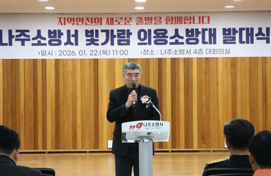 À̳¯ ¹ß´ë½Ä¿¡´Â À±º´Å ³ªÁÖ½ÃÀå, ½ÅÇâ½Ä ³ªÁÖ¼Ò¹æ¼Àå°ú ¼Ò¹æ°ø¹«¿ø, ±è¿ëÁØ¡¤Àå¼÷Èñ ³ªÁֽà ÀÇ¿ë¼Ò¹æ´ë ¿¬ÇÕȸÀå°ú ÀÇ¿ë¼Ò¹æ´ë¿ø, ÀÌÀçÅ Àü¶ó³²µµÀÇ¿ø, ³ªÁֽà ÀÇ¿ø µî 100¿© ¸íÀÌ Âü¼®ÇØ ÀÚ¸®¸¦ ºû³Â´Ù.
