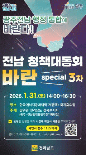 À̹ø Çà»ç´Â Áß´ëÇÑ Áö¿ª Çö¾ÈÀÎ ¡®±¤ÁÖ¡¤Àü³² ÇàÁ¤ÅëÇÕ¿¡ ¹Ù¶õ´Ù¡¯¸¦ ÁÖÁ¦·Î, ÅëÇÕ °ü·Ã ÁúÀÇÀÀ´ä(Q&A)À» ÅëÇØ Á¤º¸¸¦ °øÀ¯Çϰí ÅëÇÕ ÀÌÈÄ ¾î¶² µµ½Ã¸¦ ¸¸µé °ÍÀΰ¡¿¡ ´ëÇÑ ÀǰßÀ» Æø³Ð°Ô ¼ö·ÅÇϱâ À§ÇØ ¸¶·ÃµÆ´Ù.