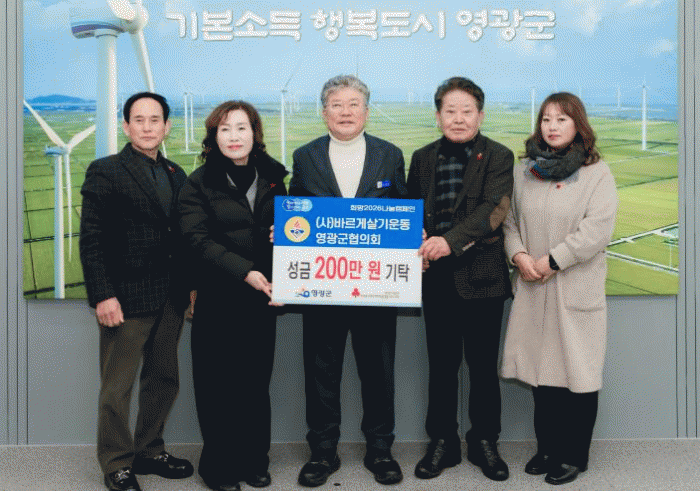 [ÅåÅå´º½º]¹Ù¸£°Ô»ì±â¿îµ¿ ¿µ±¤±ºÇùÀÇȸ´Â Áö³ 21ÀÏ, ¡®Èñ¸Á2026 ³ª´® Ä·ÆäÀΡ¯ÀÇ ÀÏȯÀ¸·Î ÀÌ¿ôµ½±â ¼º±Ý 200¸¸ ¿øÀ» ±âŹÇϰí, ¿µ±¤±º ¹Ì·¡±³À°Àç´Ü¿¡ ÀÎÀçÀ°¼ºÀåÇÐ±Ý 200¸¸ ¿øÀ» Àü´ÞÇß´Ù.