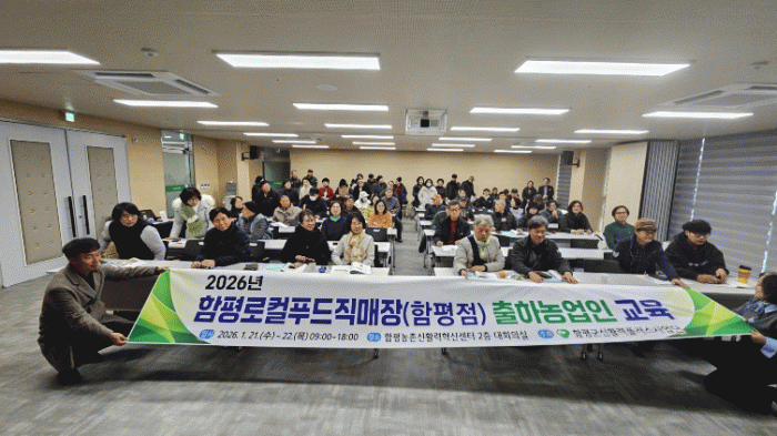 ÇÔÆò±ºÀº 22ÀÏ ¡°·ÎÄÃǪµåÁ÷¸ÅÀå ÃâÇÏÀÚ ±³À°ÀÌ Áö³ 21ÀϺÎÅÍ 22ÀϱîÁö ÀÌÆ²°£ ÇÔÆò³óÃ̽ÅȰ·ÂÇõ½Å¼¾ÅÍ(ÇÔÆò±º³ó¾÷ÀÎȸ°ü) ´ëȸÀǽǿ¡¼ ¼ºÈ²¸®¿¡ ¸¶¹«¸®µÆ´Ù¡±°í ¹àÇû´Ù. ±³À°¿¡´Â ·ÎÄÃǪµåÁ÷¸ÅÀå(ÇÔÆòÁ¡)Á¶ÇÕ¿ø ÃÑ 150¿© ¸íÀÌ Âü¼®ÇØ ³ôÀº ¿ÀǸ¦ º¸¿´´Ù.