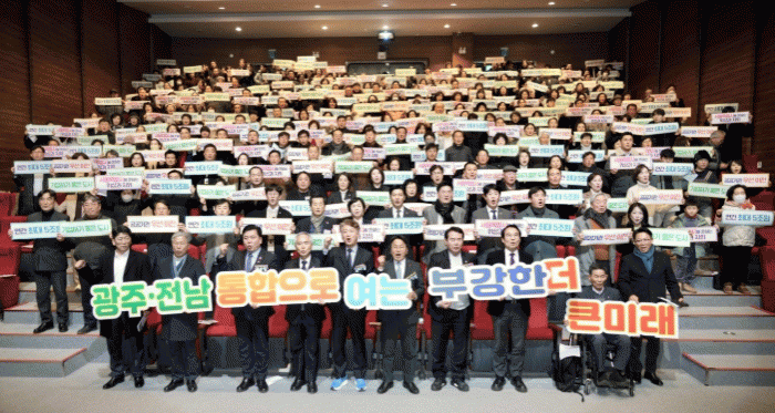 °±âÁ¤ ±¤ÁÖ½ÃÀåÀº ¡°Ã»³âÀÌ ¶°³ªÁö ¾Ê´Â ºÎ°ÇÑ µµ½Ã¸¦ ¸¸µé°Ú´Ù´Â ½Ãµµ¹ÎÀÇ ¿°¿ø°ú ´ëÅë·ÉÀÇ ÀÇÁö, ½ÃµµÁö»ç °á´ÜÀÌ ¸¸³ª ±¤ÁÖÀü³² ´ëÅëÇÕÀ¸·Î ºü¸£°Ô °¡°í ÀÖ´Ù¡±¸ç ¡°¾ÕÀ¸·Îµµ ´Ù¾çÇÑ ¹æ½ÄÀ¸·Î ÅëÇÕ°ú Ưº°¹ý¿¡ ´ëÇØ ÃæºÐÈ÷ µè°í ¼ÒÅëÇϰڴÙ. °øÃ»È¸¸¦ ÅëÇØ Á¦½ÃµÈ ¼ÒÁßÇÑ ÀǰßÀ» ¹ÙÅÁÀ¸·Î ½Ã¹ÎÀÌ °ø°¨ÇÒ ¼ö ÀÖ´Â ÅëÇÕ ¸ðµ¨À» ¸¶·ÃÇϰڴ١±°í ¹àÇû´Ù.
