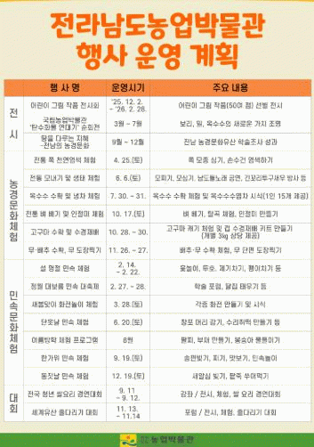 ÀüÅë ³ó°æ¹®È Á¶»ç¡¤¿¬±¸¡¤Àü½Ã¡¤Çмú Ȱµ¿ µîÀÇ Àü¹®¼ºÀ» °ÈÇϰí, µµ¹Î ¹®È ÇâÀ¯ ±âȸ È®´ë¸¦ À§ÇØ ÀÌ»ö Ưº°Àü½Ãȸ¿Í ÇмúÇà»çµµ ÃßÁøÇÑ´Ù.