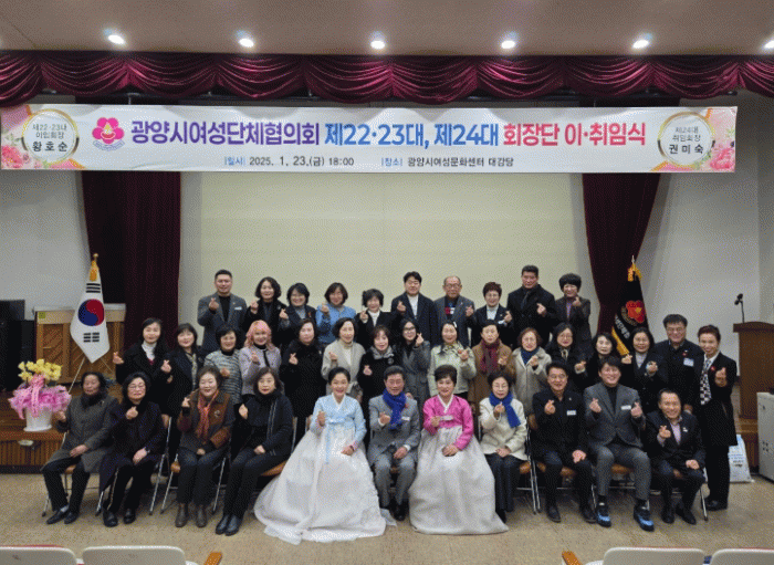 [ÅåÅå´º½º]±¤¾ç½Ã ¿©¼º´ÜüÇùÀÇȸ´Â Áö³ 1¿ù 23ÀÏ, ¿©¼º¹®È¼¾ÅÍ 1Ãþ ´ë°´ç¿¡¼ Á¦ 22.23´ë ȸÀå ÀÌÀÓ°ú Á¦24´ë ȸÀå ÃëÀÓÀ» ±â³äÇÏ´Â ÀÌ¡¤ÃëÀÓ½ÄÀ» ¼ºÈ²¸®¿¡ °³ÃÖÇß´Ù.