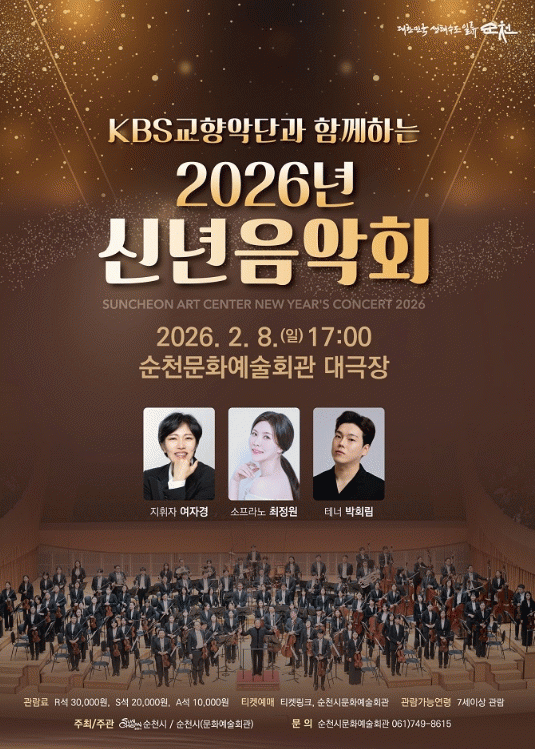 [ÅåÅå´º½º]¼øÃµ½Ã´Â 2026³â »õÇØ¸¦ ¿©´Â ù °ø¿¬À¸·Î ´ëÇѹα¹À» ´ëÇ¥ÇÏ´Â KBS±³Çâ¾Ç´Ü Ŭ·¡½Ä°ø¿¬À» ¿À´Â 2¿ù 8ÀÏ(ÀÏ) ¿ÀÈÄ 5½Ã ¼øÃµ¹®È¿¹¼úȸ°ü ´ë±ØÀå¿¡¼ °³ÃÖÇÑ´Ù°í ¹àÇû´Ù.