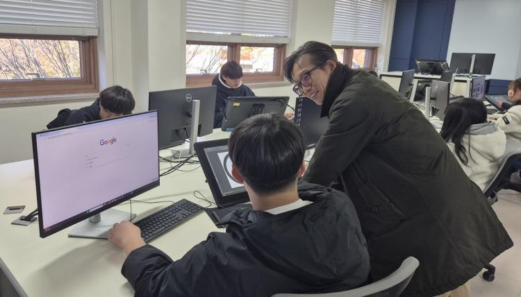 À̳¯ ÇÁ·Î±×·¥¿¡¼´Â ¸¸È¾Ö´Ï¸ÞÀ̼ÇÇаú¿¡ ´ëÇÑ Àü¹ÝÀûÀÎ ¼Ò°³¸¦ ½ÃÀÛÀ¸·Î, ¸¸È, ¾Ö´Ï¸ÞÀÌ¼Ç Á¦ÀÛ ±³À°ÀÌ ÀÌ·ç¾îÁö´Â Àü°ø ½Ç½À½Ç Åõ¾î°¡ ÇÔ²² ÁøÇàµÅ Âü¿© ÇлýµéÀÇ ÀÌÇØ¸¦ µµ¿Ô´Ù. ÇлýµéÀº ½ÇÁ¦ ´ëÇÐ Àü°ø ¼ö¾÷ ȯ°æÀ» Á÷Á¢ µÑ·¯º¸¸ç ¸¸È, ¾Ö´Ï¸ÞÀÌ¼Ç ºÐ¾ßÀÇ ÇнÀ °úÁ¤°ú Áø·Î¿¡ ´ëÇØ ÀÌÇØÇÏ´Â ½Ã°£À» °¡Á³´Ù.