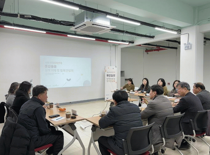 [ÅåÅå´º½º]¿©¼ö½Ã´Â Áö³ 1¿ù 22ÀÏ »çȸ¿¬´ë°æÁ¦±â¾÷°ú ¸¶À»°øµ¿Ã¼, ¹Î°£´Üü ¹× ÇàÁ¤ °ü°èÀÚ°¡ Âü¼®ÇÑ °¡¿îµ¥ ¡®»çȸ¿¬´ë°æÁ¦ ¿¬°è ÅëÇÕµ¹º½ Á¤Ã¥ ÀÌÇØ ¹× Çù·Â 1Â÷ °£´ãȸ¡¯¸¦ °³ÃÖÇß´Ù°í ¹àÇû´Ù.