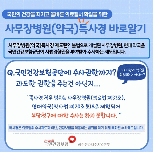 [ÅåÅå´º½º] ±¹¹Î°Ç°º¸Çè°ø´Ü ±¤ÁÖÀü¶óÁ¦ÁÖÁö¿ªº»ºÎ´Â °ø´ÜÀÌ µµÀÔÇÏ´Â »ç¹«À庴¿ø(¾à±¹)Ư»ç°æ Á¦µµ¿¡ ´ëÇÑ ±¹¹ÎµéÀÇ ±Ã±ÝÁõÀ» ¾Ë±â ½±°Ô ¼³¸íÇÑ Ä«µå´º½º 5Á¾À» Á¦ÀÛÇÏ¿© ÃÑ 5ÁÖ¿¡ °ÅÃÄ °Ô½ÃµÇ°í ÀÖ´Ù.