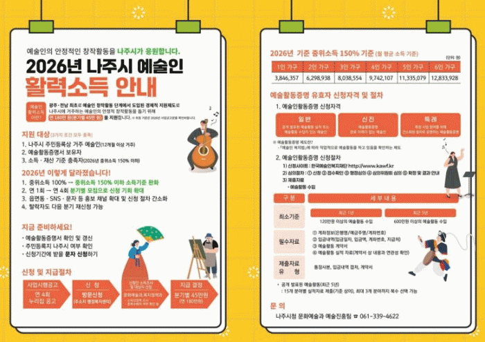 [ÅåÅå´º½º]Àü¶ó³²µµ ³ªÁֽð¡ Áö¿ª ¿¹¼úÀÎÀÇ ¾ÈÁ¤ÀûÀΠâÀÛ È°µ¿°ú »ýȰ ¾ÈÁ¤À» µ¿½Ã¿¡ Áö¿øÇϱâ À§ÇØ ¡®2026 ¿¹¼úÀΠȰ·Â¼Òµæ Áö¿ø±Ý¡¯ ½Åû Á¢¼ö¸¦ ½ÃÀÛÇÏ¸ç ¹®È¿¹¼ú »ýŰèÀÇ Áö¼Ó °¡´É¼ºÀ» °ÈÇÑ´Ù.